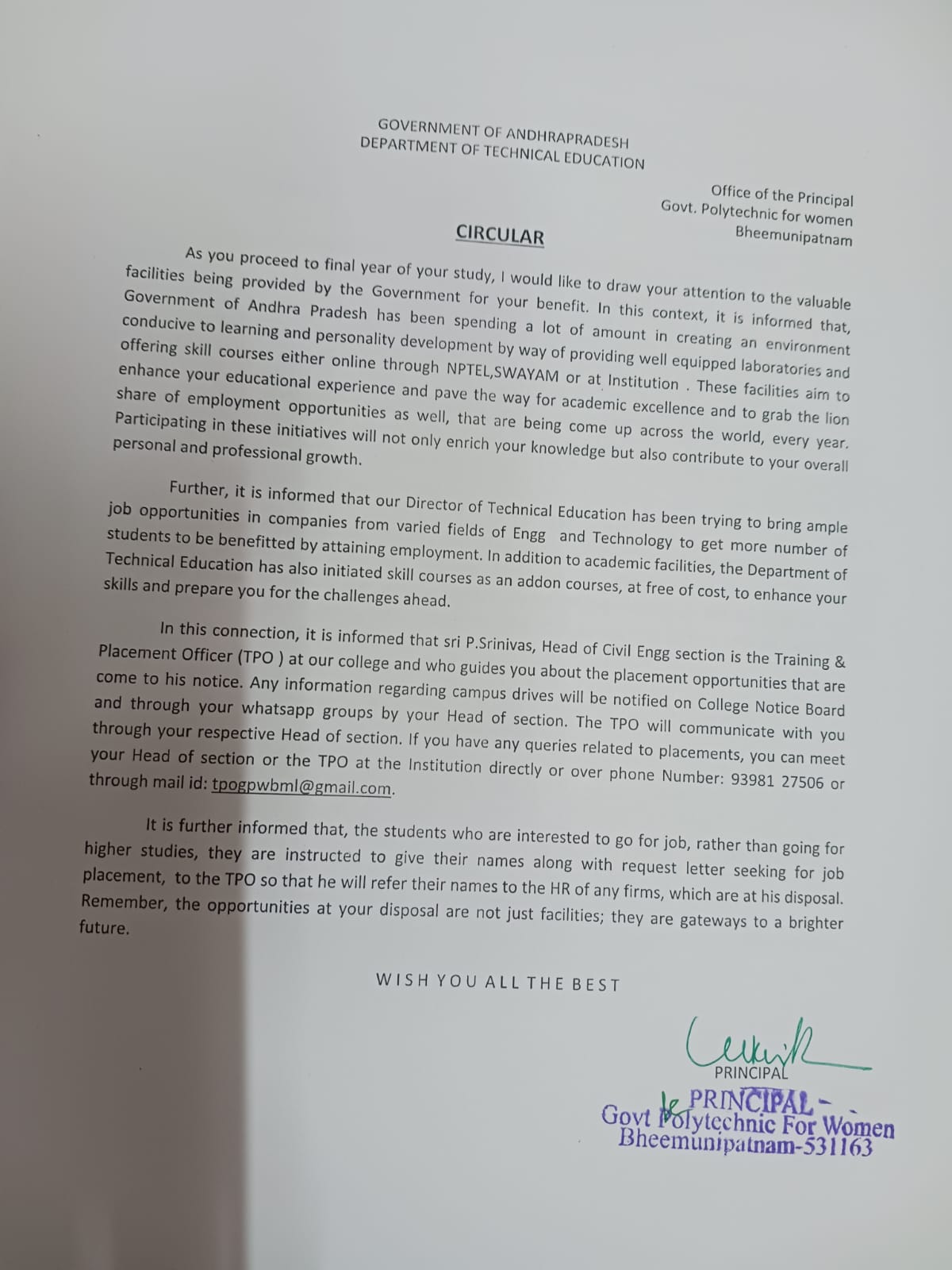 ADDRESSGOVERNMENT POLYTECHNIC FOR WOMEN, NERELLAVALASA COLONY(Village), BHEEMUNIPATNAM-531163, VISAKHAPATNAM-DIST, ANDHRA PRADESH, INDIA.ph:08933-229009